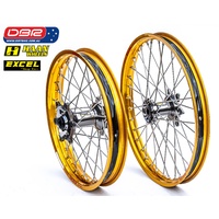 Ok so what is the Haan Factory Rally Wheel Set. This wheel set is quite simply the strongest combo possible for serious Offroad use. Perfect for the purpose of building a Rally bike from a enduro Single cylinder range so as to simply have a great lightweight Adventure Bike. Ideal for protecting the Hard facing on the gearbox and smoothing out the ride. For the Twin Cylinder owners the Rally Spec Wheel sets are generally narrower than OEM and standard up to offroad use far superior to OEM. We start with a HAAN cush drive rear hub and then lace that to the Excel Takasako Rim with the best spokes made from Haan. Sounds simple but why buy them from Dirtbike Pty Ltd.