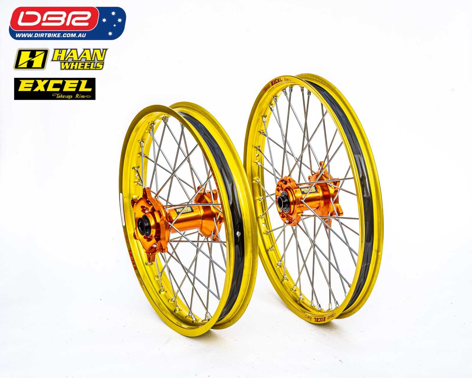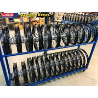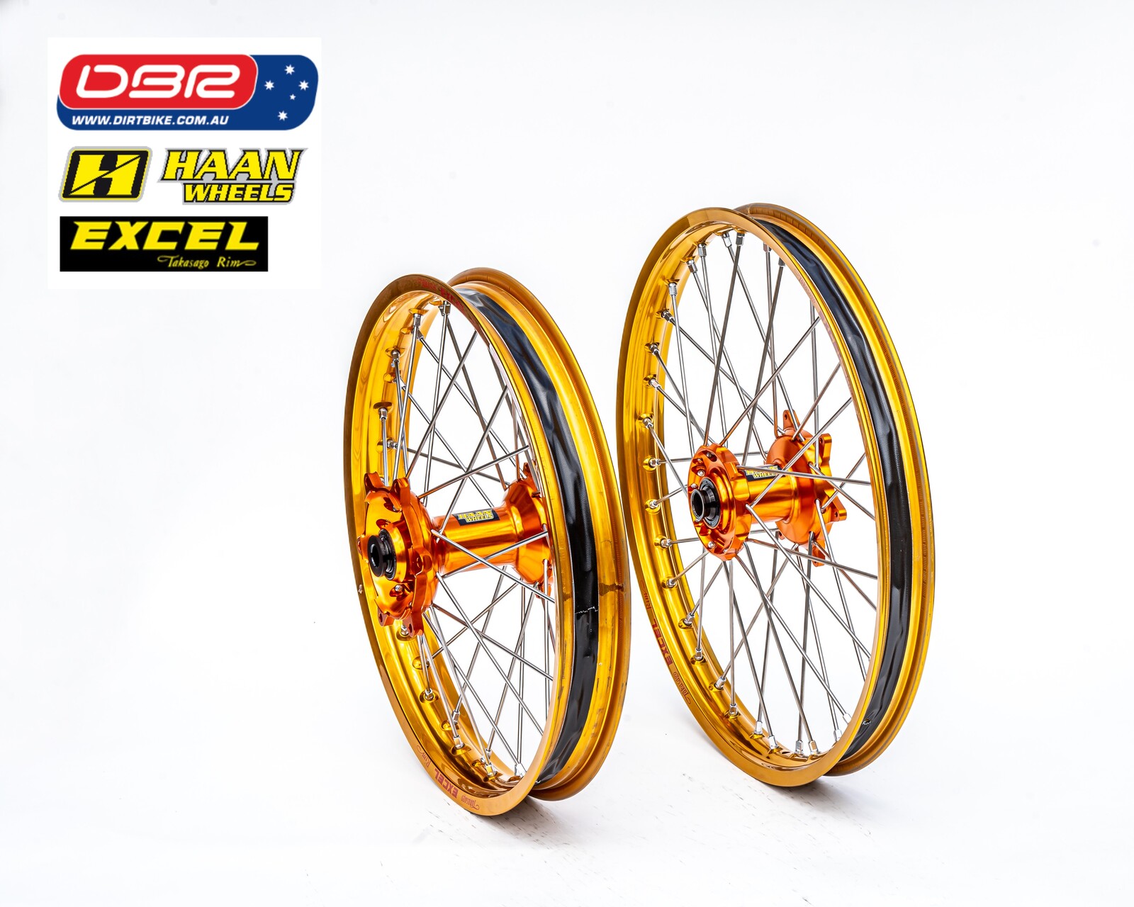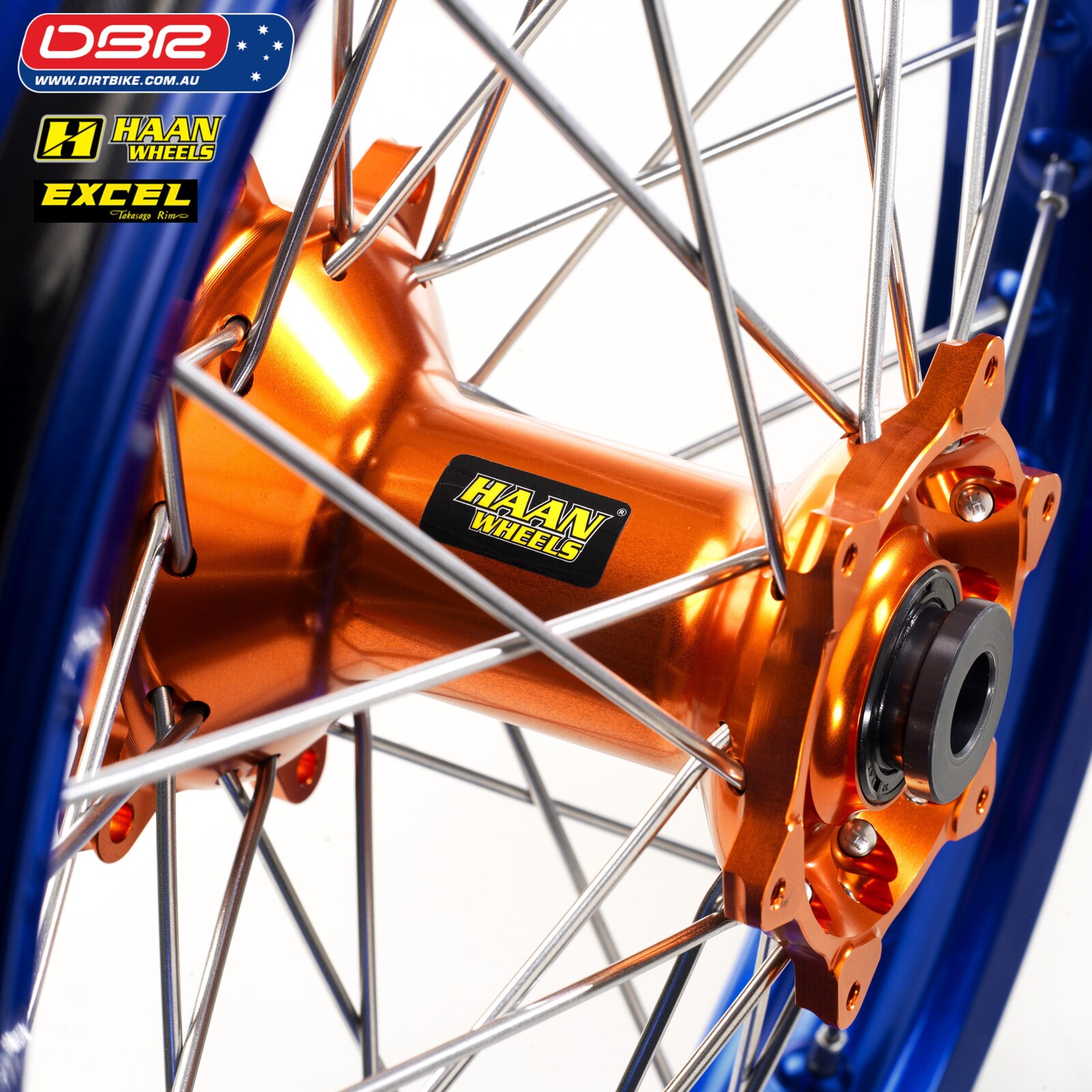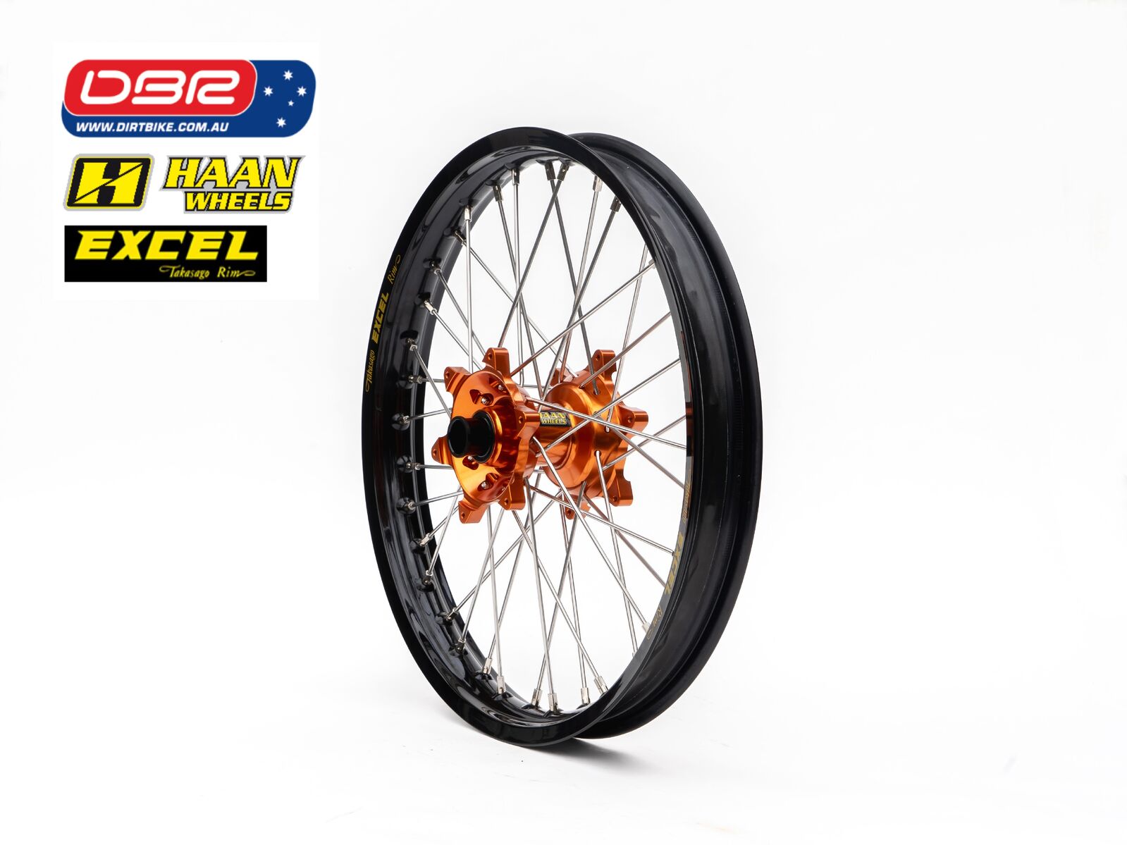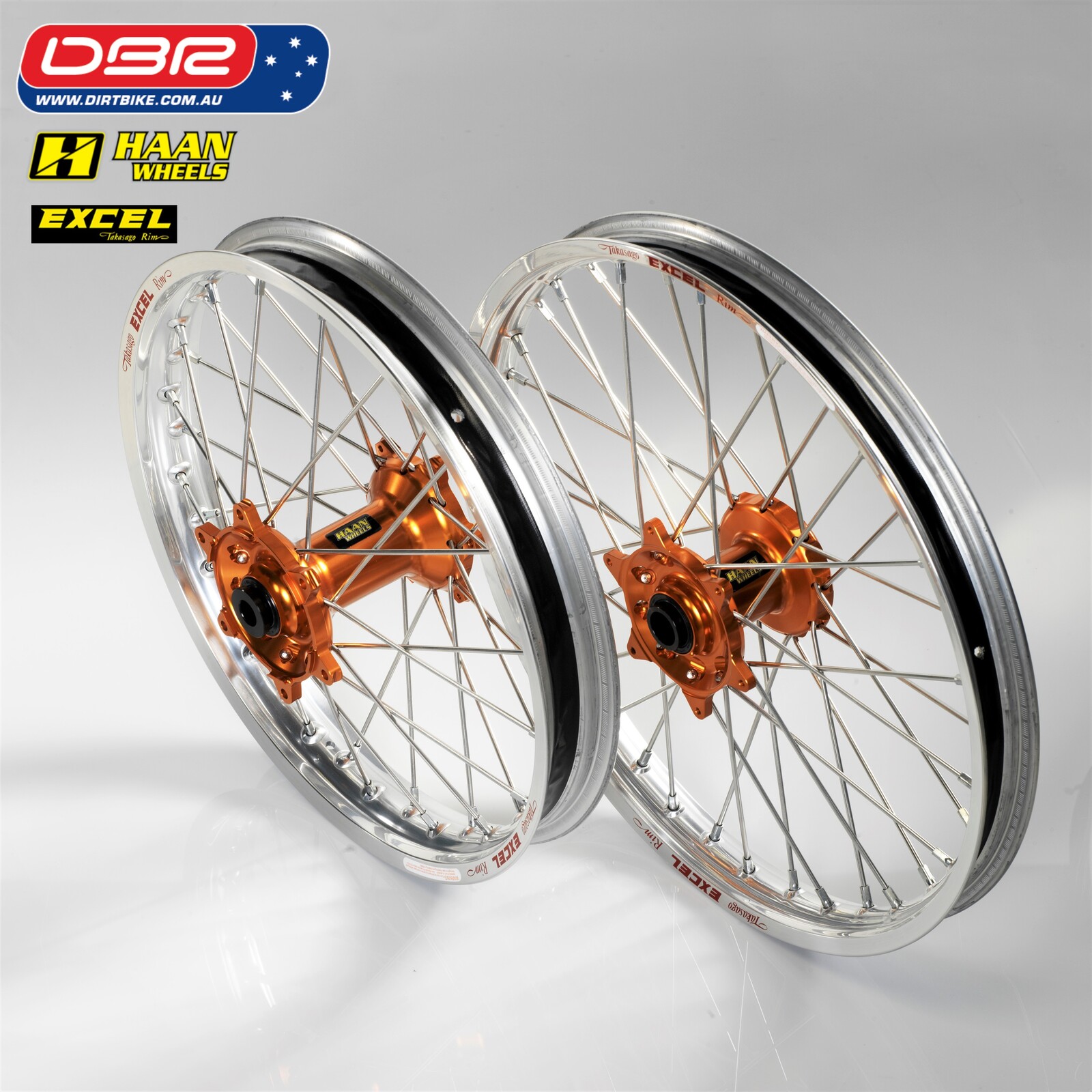 Ok so what is the KTM EXC Factory Rally Wheel Set. This wheel set is quite simply the strongest combo possible for the KTM EXC Offroad Range. Perfect for the purpose of building a Rally bike from the exc sxf Range or simply a great lightweight Adventure Bike. Ideal for protecting the Hard facing on the gearbox and smoothing out the ride. We start with a HAAN cush drive rear hub and then lace that to the Excel Takasako Rim with the best spokes made from Haan. Sounds simple but why buy them from Dirtbike Pty Ltd.