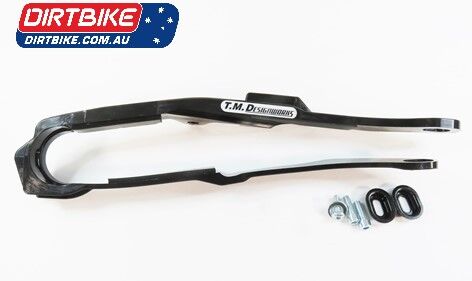 Compression injected molded chain slider. Suitable for all types of riding. Developed with additional material and design shape to increase performance and durability. Chain guidance control wing keeps the chain in better alignment and minimizes tire buzz. Friction reducing additives and UV protection to eliminate color fade. Sound damping pads reduce chain slap noise. Includes new bushings and mounting hardware. Used by championship winning race teams worldwide. Recommended by MXA, Dirt Bike and Dirt Rider magazines. Made in the USA. Patent Pending. NOTE: Street riding will have much higher sustained chain speed increasing fiction and heat. The slider may wear at faster rate then typical off road riding.
