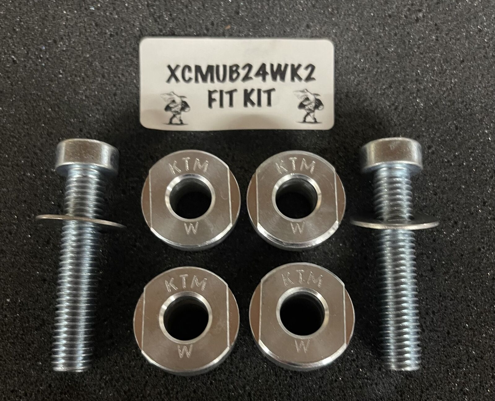 MAKO 360 BOLT MOUNT KIT SUB KTM (24->C) EXC / EXCF / XCW. SUB MOUNT APPLICATIONS ( Not 6 Day models with Billet Clamps). 2 x Perch Bolts Low Head and washers (M10-1.5 x 50mm) 4 x (KTM W) Cones NOT Threaded.